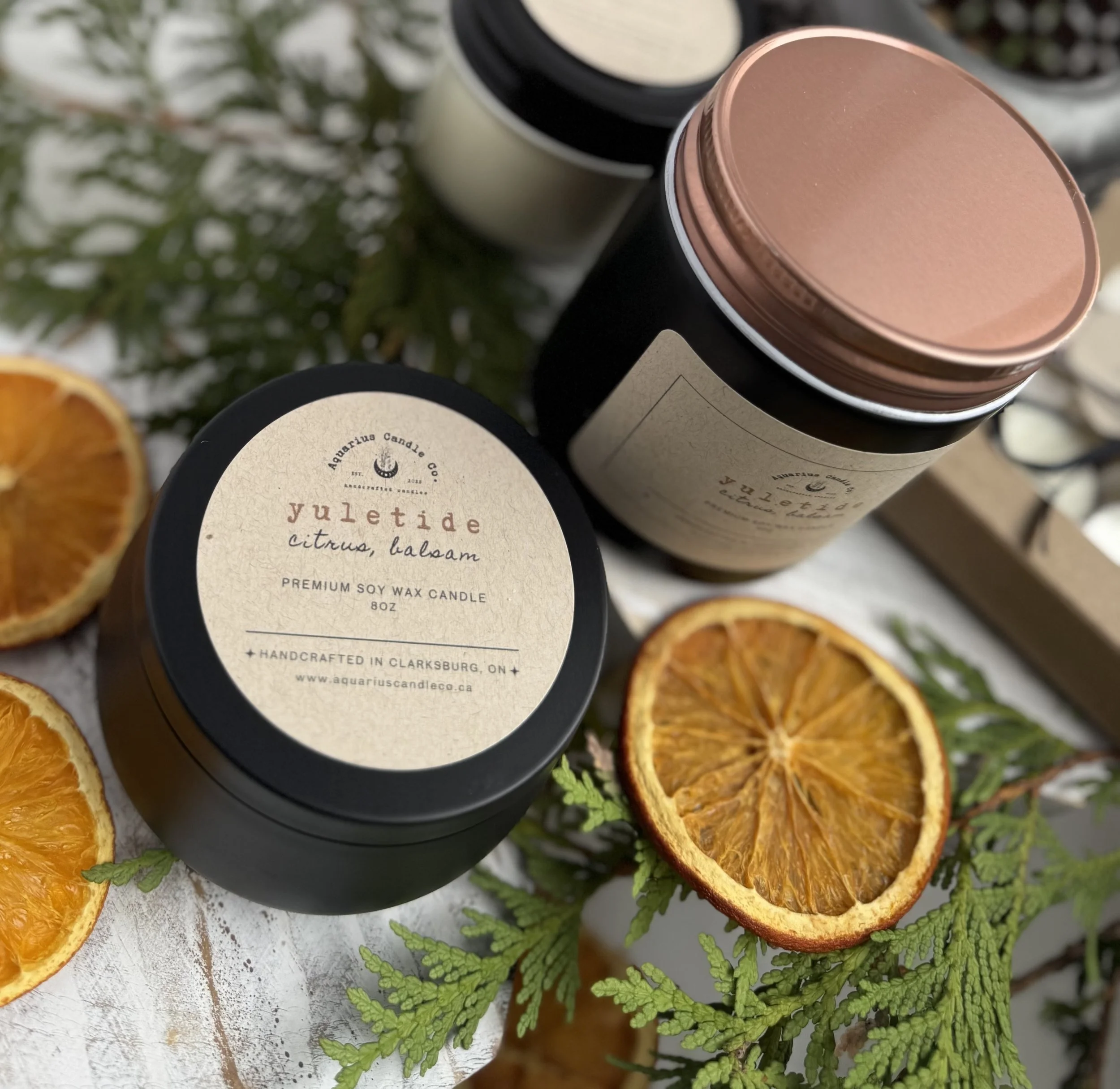 Brewed with soy wax and creatively curated scent blends, Aquarius Candles are handcrafted with care in small batches in the beautiful Town of the Blue Mountains, Ontario.