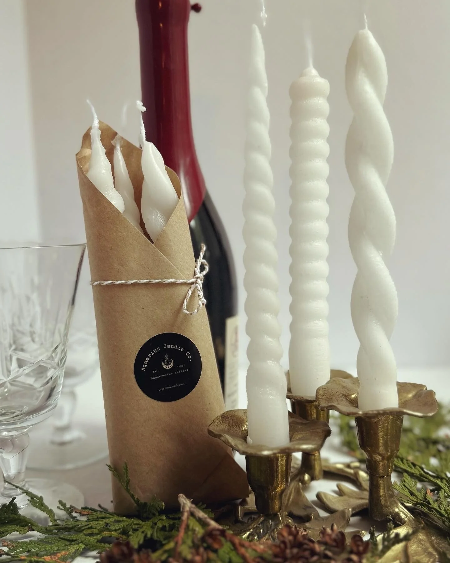Our tapers and soy wax, scented candles pair perfectly with a bottle of local wine or cider, vintage treasures, and much more.